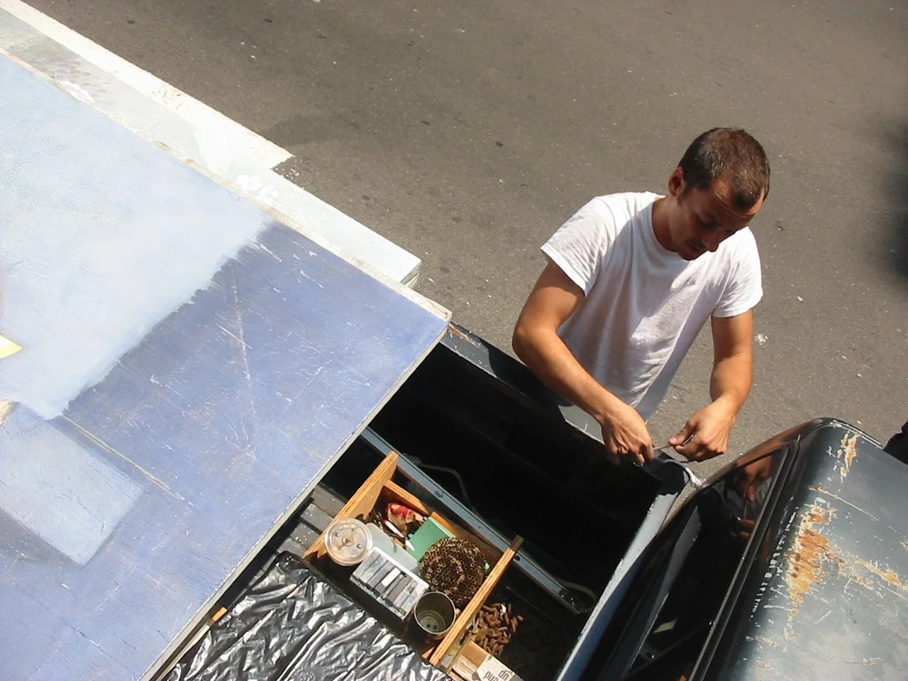 When Brian’s show came down, he cleared out his painting studio. Todd and I helped him move all of his unsold paintings and supplies to a mini storage facility in the East Village. After we loaded up the truck and started driving them to the storage space, Brian told us about his latest plan to travel around Southeast Asia next spring. "Then, after I travel around for a while, I'm gonna find a monastery — an ashram or something — and just drop out. I'll just walk around the grounds, taking care of goats. I don't want to do anything else."