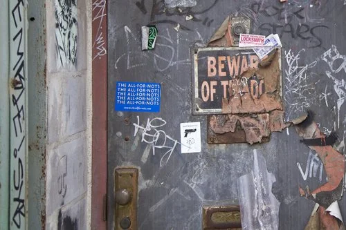 Earlier, I had seen a girl taking a photo of a guy who was pretending to scale a fence into a vacant lot. He was well-dressed in a Williamsburg hipster kind of way -- skinny black jeans and a black blazer -- and I figured they were taking promotional shots to promote whatever particular project it was the guy was trying to promote. A band, a book, an art show, a poetry project, a party? Who knows.
