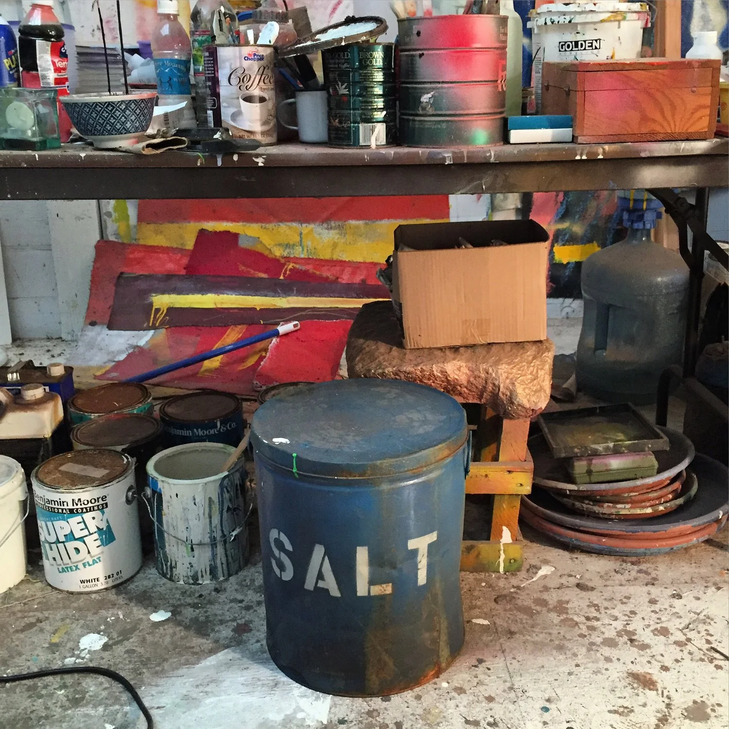 I looked around and saw no paintings to comment on either way. Just a bunch of canvases that appeared to have been sitting around for years — dusty unstretched panels, smudged with paint here or there.