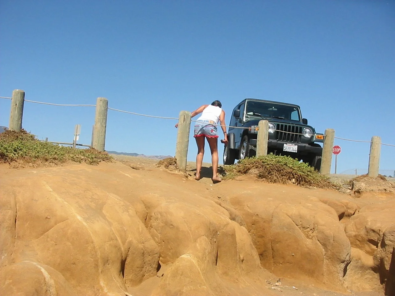 After a decent night's sleep, we meandered down the coast the next day. Arrived at 6 p.m. or so and parked at a broken parking meter in front of Anti's apartment. Anti came out to meet us. Angelina and I grabbed our bags from the back of her Jeep, and Anti absentmindedly poked a small hole in a white plastic garbage bag that someone had tied over the meter. Suddenly, from out of nowhere, a group of three Asian ladies came running over and started giving Anti the business for poking the plastic. The bag was tied over two meters -- one for the spot where the Asian ladies were parked, and one for the spot that Angelina had just taken. "Stop, stop," I heard them yelling.