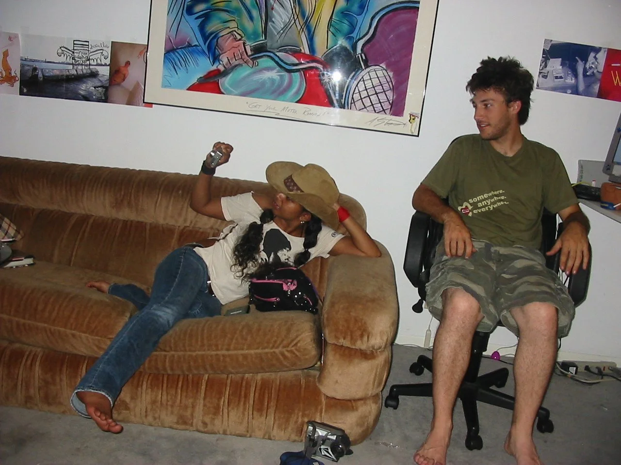 I never got the whole story, but the matter was settled and we followed Anti into his lair: ashtrays and beer bottles; bong smoke and novelty lighters; skateboards and photographs. And one big ugly oversized work of art. I couldn't keep from commenting on it. "Dude, that is one ugly painting."
