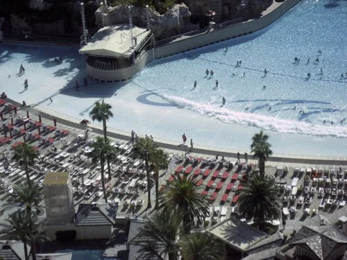 I've been to Las Vegas at least half a dozen times, but this was the first trip when it wasn't 110 degrees outside and I could actually walk farther than half a block before calling it quits. So, after finishing breakfast, I took my coffee and went for a walk. From Mandalay Bay at the south end of the Strip to the Sahara at the north end is roughly four and a half miles on the map, but with all the stairways and overpasses, I'm sure it's longer than that.