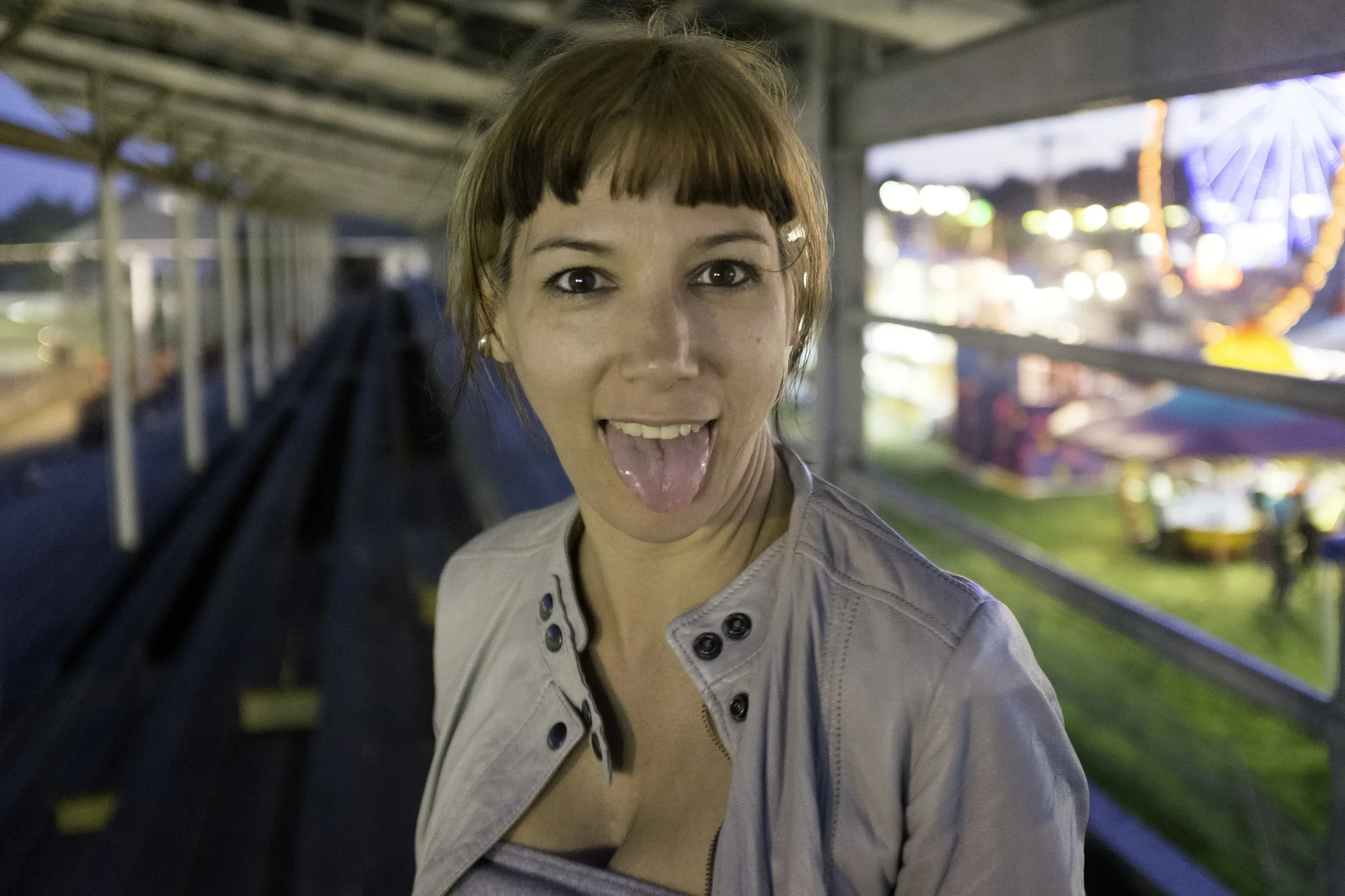 With the bike out of commission and the light getting too dim for photos, I put my camera away, and we just watched the races. Soon we got hungry. The Orange County Fair was going on over our shoulders, and from the stands, we could see the games and barkers, the rides and food trucks. "Should we get a hot dog or something?"