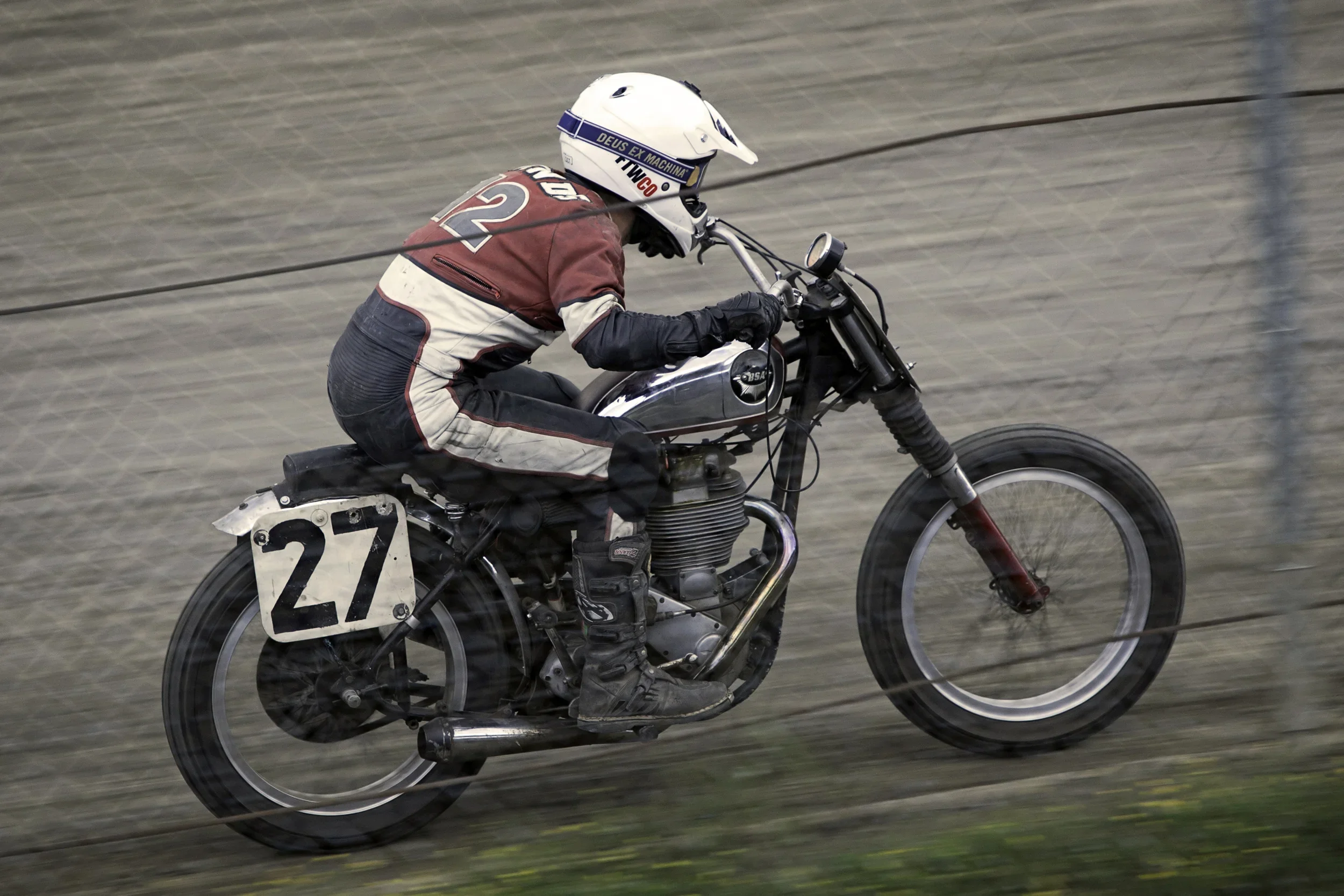 Over the weekend, my friend Wade played the part of a high-falutin race car owner by loaning one of his bikes out for a little vintage flat track fun. That is to say, Wade doesn't race himself, but he owns a few bikes and, rather than let them sit in his crowded garage of lost toys, he decided to let one out of its cage to live the life it was meant to live. The bike in question is a 1959 BSA Gold Star. Wade bought it a little over a year ago from Hugh, a local mechanic and flat track racer who, himself, had purchased it (in pieces) from the estate of its original owner. Hugh put the bike back together, raced it for a season or two, then sold it to Wade, who then added it to his ever-growing aforementioned collection. Wade is quite proud of the bike and even went so far as to create a scrapbook filled with photos from its storied history.