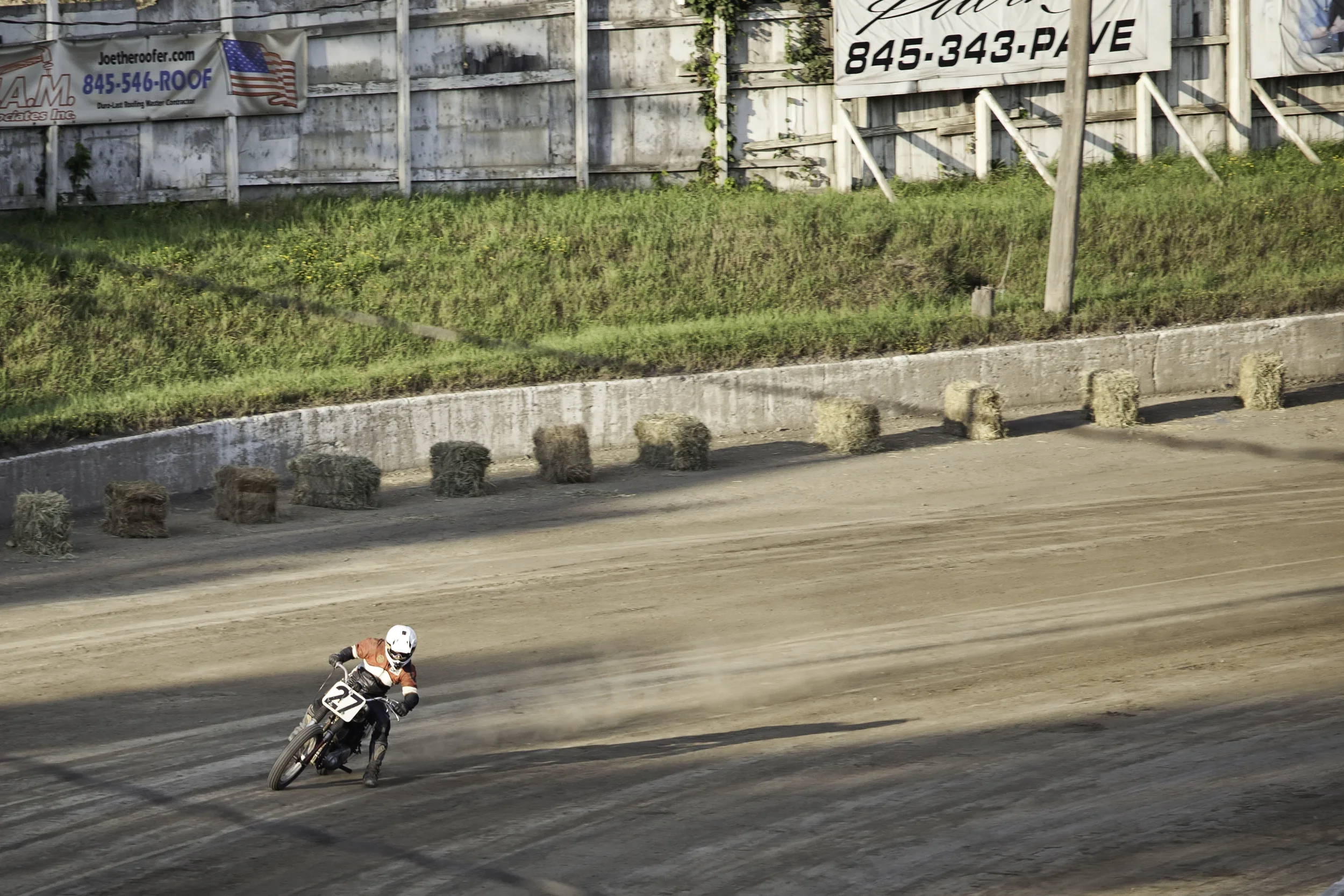 I didn't have the best location for photos, but I managed to get a few good ones from the stands. Practice began at 5 P.M., and the racing started at 7; however, by the time the real action got underway, I was losing the light. It became difficult for me to see who I was photographing. We were sitting at the far end, away from the announcer, and couldn't hear a word the announcer was saying, so he was no help. I asked Deborah to keep an eye out for number 27 and to let me know when it was coming. I snapped a couple of shots on the first lap, then waited for 27 to come around again to get a few more. It seemed to be taking too long.