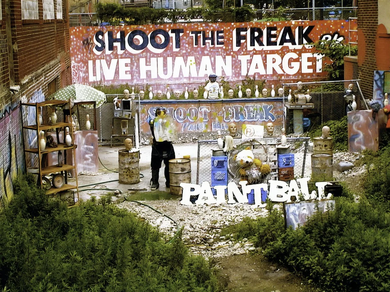 We watched a guy shoot paintballs at a "Real Human Target" for a few minutes before Pauline looked around the boardwalk and observed, "This is a pretty easy place to shoot the freak. All you have to do is aim the gun in the opposite direction and you're bound to hit one."